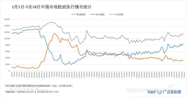 图:2020.1.1-5.18中国内地航班执行情况。图片、数据来源:飞友科技