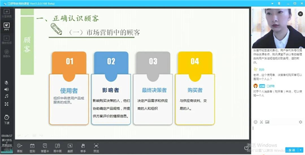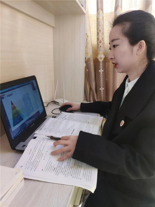 面对屏幕和摄像头,回想3月2日当她第一次开始网上授课时,还是怕遇到很多问题的,不过当课程正式开始,熟悉直播签到系统对学生出勤情况进行考核,了解学生的到课状况,对未按时上课的学生加以记录并核实原因。更重要的是想学生们在电脑屏幕前有更多的互动和头脑风暴。还有与学生语音连线互动的方式及时了解学生存在的问题,并对学生的问题进行及时的解答。这样的反馈和互动,让她慢慢的习惯了这种上课模式。她还说,“看到评论区同学们的点赞和双击666。她觉得是对自己这个‘新手主播’的认可。”