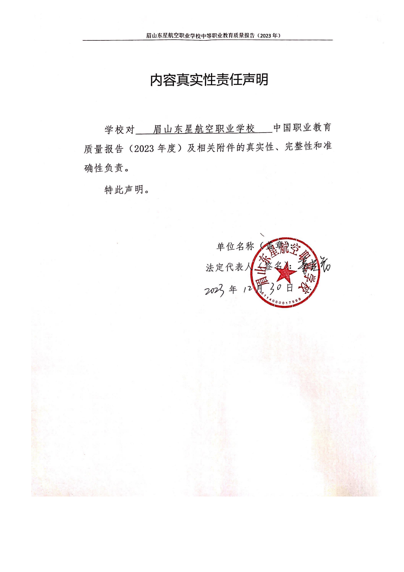 2023年度眉山东星航空职业学校质量年度报告