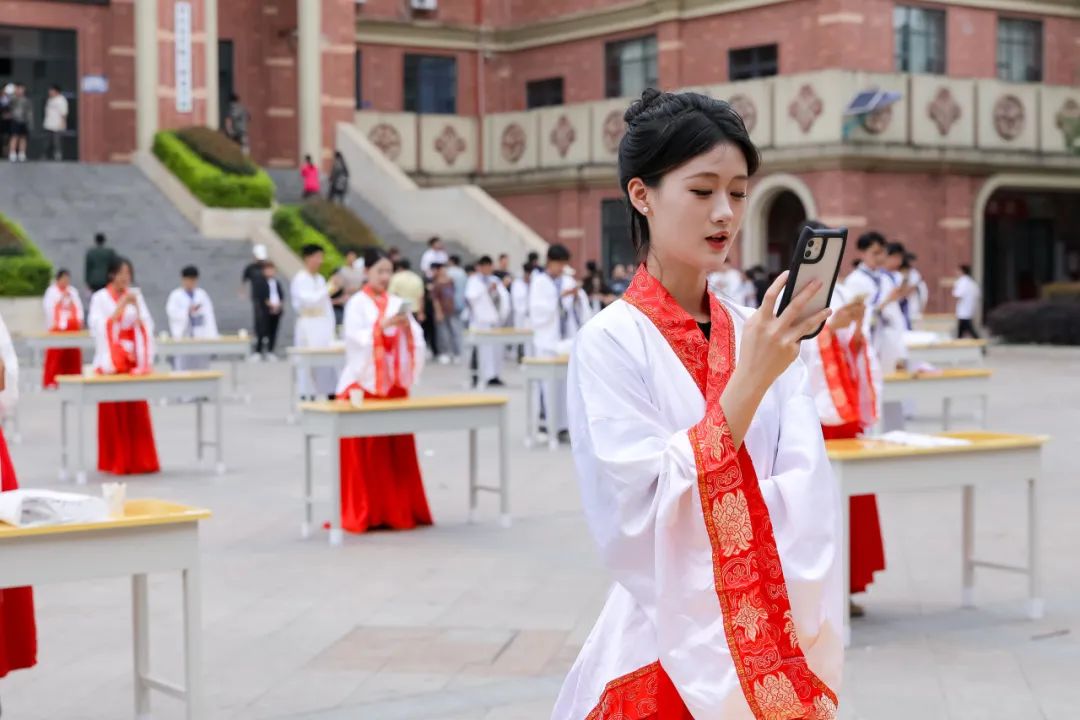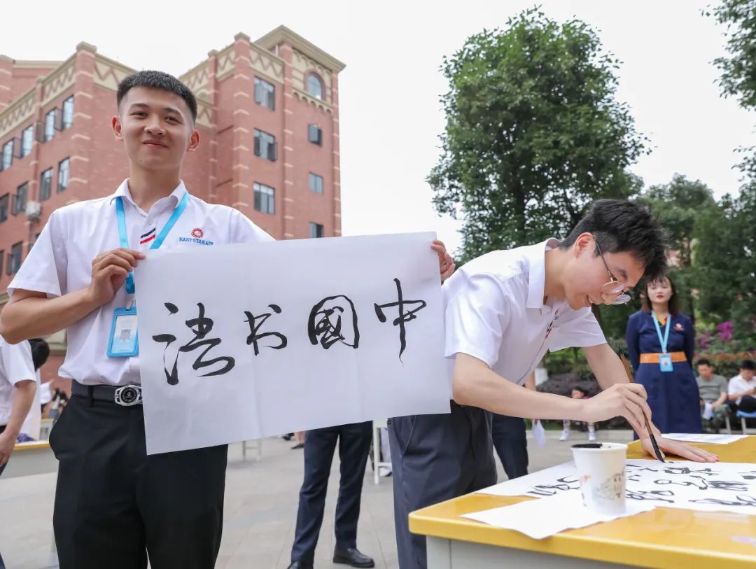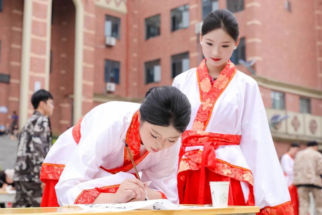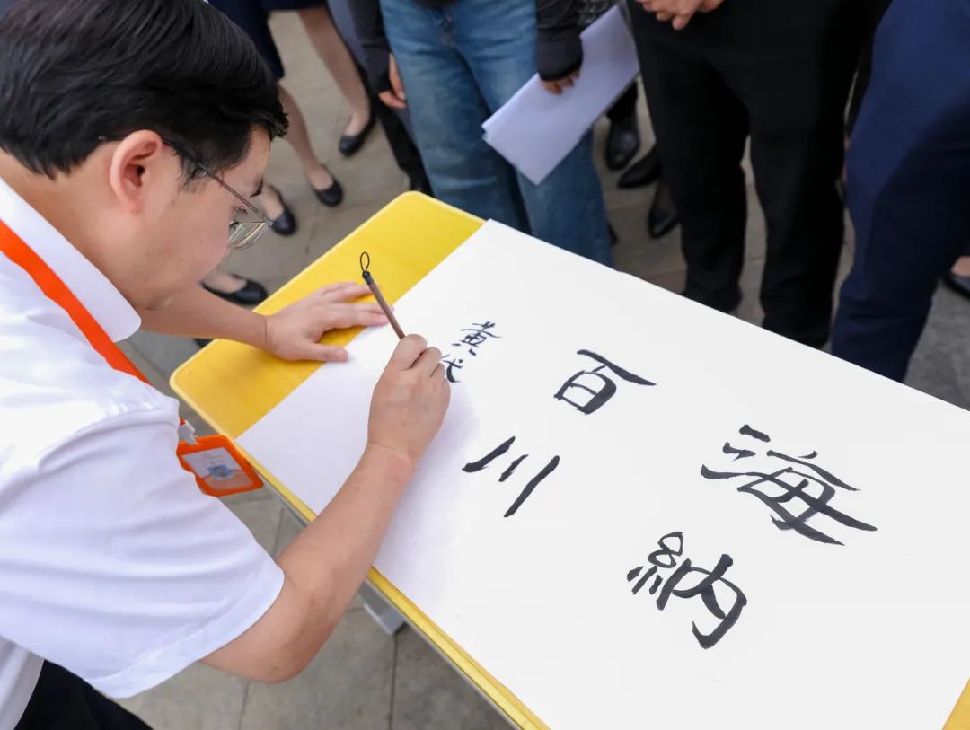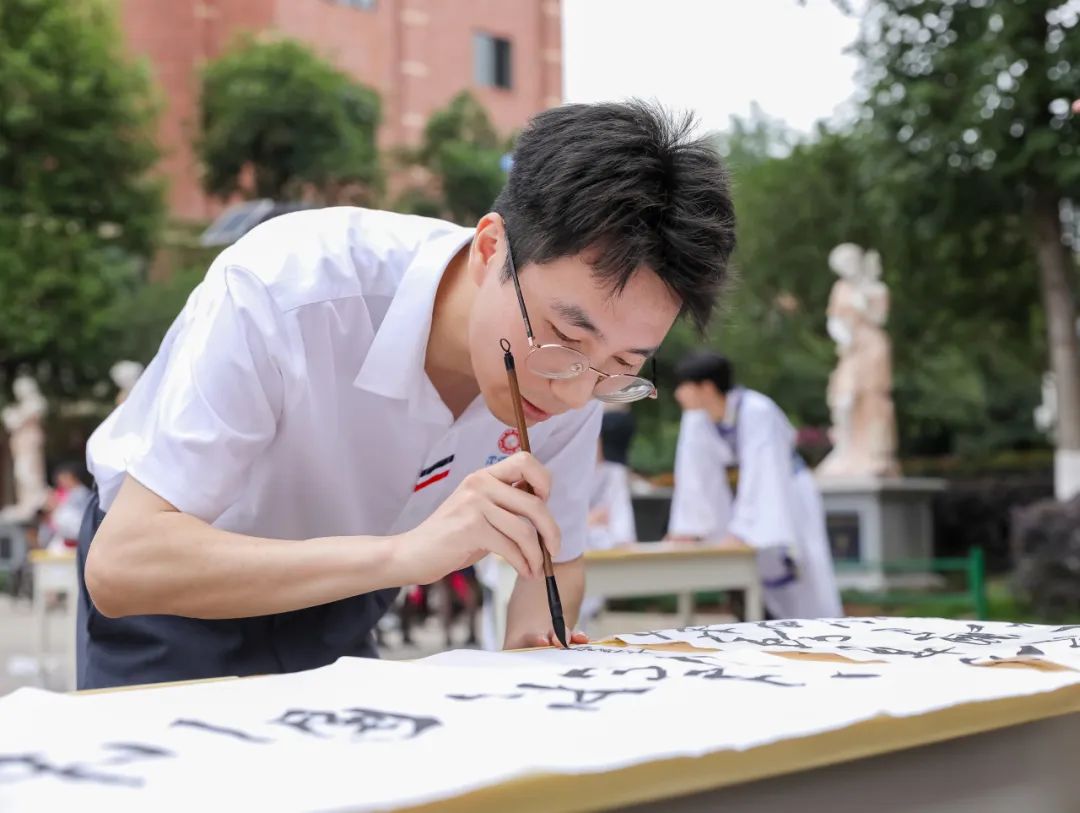 紧接着,“百人齐书”大型书法秀震撼上演。现场的师生们挥毫泼墨,或行或楷,或草或隶,一幅幅精美的书法作品在大家的眼前徐徐展开,展现了中华书法艺术的无穷魅力。