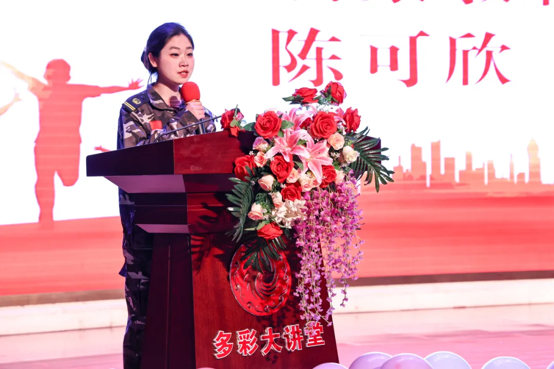 优秀学生代表陈可欣登台发言。她表达了对新学期的热忱与憧憬,并动情地分享了在学校的感悟:“这里有诲人不倦的良师指引方向,有先进专业的实训设备助力技能提升,有浓厚向上的学习氛围促进共同成长。”号召大家怀揣梦想,脚踏实地,在天航沃土上勤学苦练,逐梦前行。